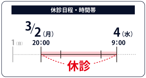 3/2(月)20:00~3/4(水)9:00まで休診【センター】